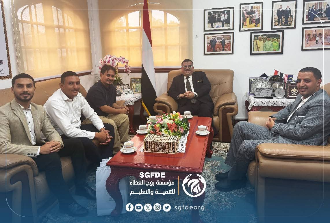 قام رئيس مؤسسة روح العطاء الأستاذ عبدالرؤوف محمد اليوسفي بزيارة سعادة السفير عادل محمد علي باحميد، سفير الجمهورية اليمنية في ماليزيا، حيث جرى خلال اللقاء استعراض أنشطة المؤسسة وجهودها الإنسانية والتنموية.