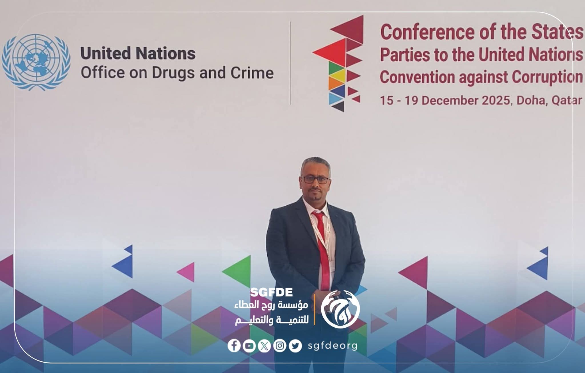 ضمن جهود المؤسسة المستمرة لتعزيز الحضور المؤسسي وبناء الشراكات الدولية، شاركت مؤسسة روح العطاء للتنمية والتعليم في مؤتمر الدول الأطراف في اتفاقية الأمم المتحدة لمكافحة الفساد، المنعقد في الدوحة – قطر،