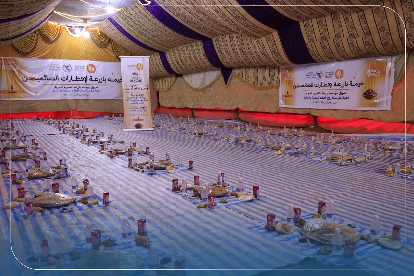 تتواصل أعمال خيمة بازرعة لإفطارات الصائمين – 2026 في محافظة تعز، لتقديم وجبات الإفطار للصائمين يوميًا، في إطار الجهود الإنسانية الرامية إلى ترسيخ قيم التكافل والتراحم خلال شهر رمضان المبارك.