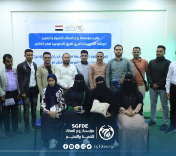 ورشة تدريبية لتأهيل الفرق التطوعية لمؤسسة روح العطاءSGFDE ORGديسمبر 25, 2025 ضمن جهود مؤسسة روح العطاء للتنمية والتعليم في بناء قدرات المتطوعين وتعزيز فاعليتهم في مختلف المجالات، أُقيمت اليوم ... اقرأ أكثر